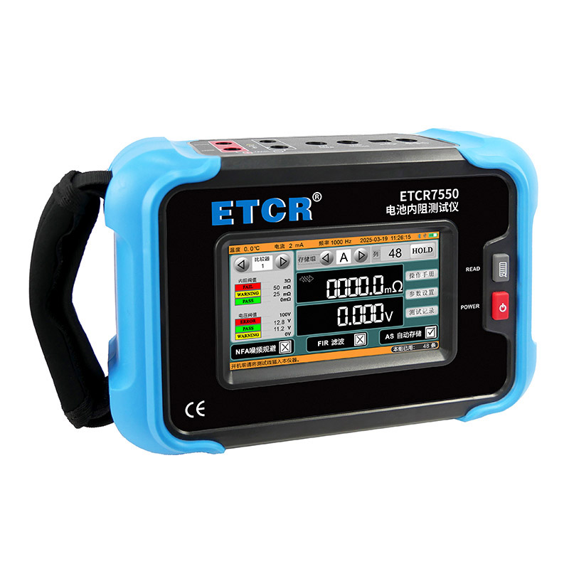 ETCR7550電池內(nèi)阻測試儀采用5寸觸摸彩屏,儀表高檔美觀,量程寬廣,分辨率高,操作便捷,攜帶方便,準確、可靠、性能穩(wěn)定,抗干擾能力強。是電池生產(chǎn)、電池安裝、設備生產(chǎn)、設備維修等場景必不可少的儀器。