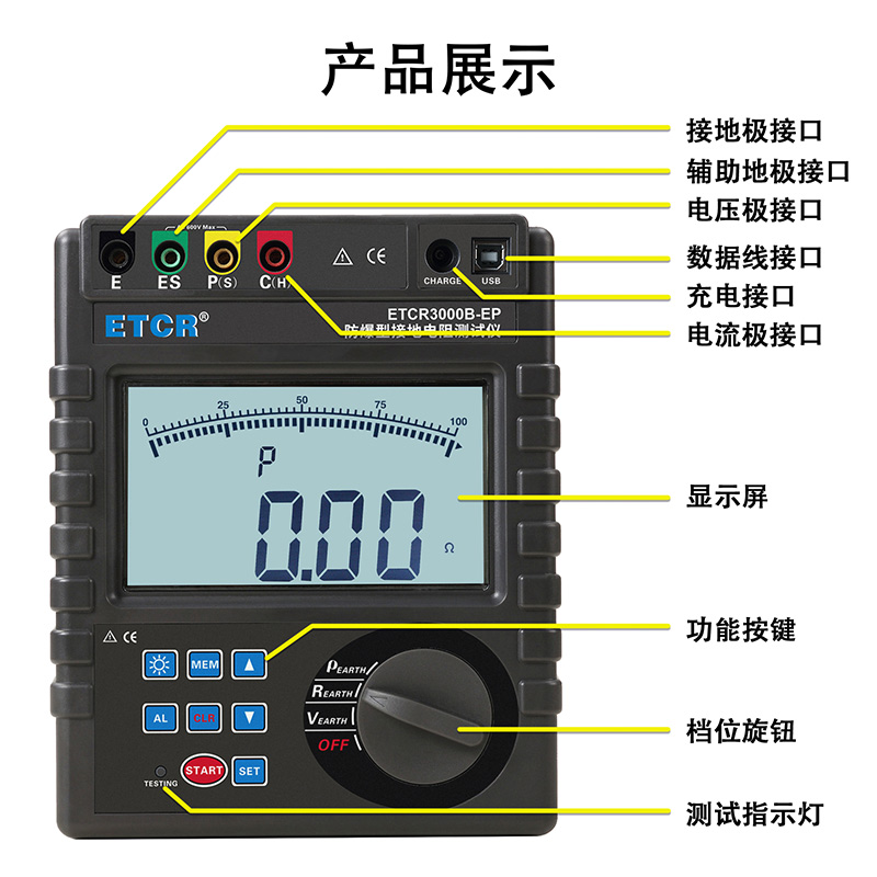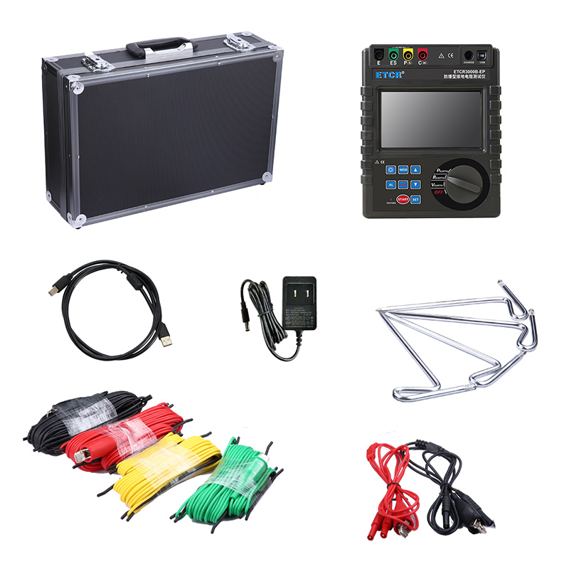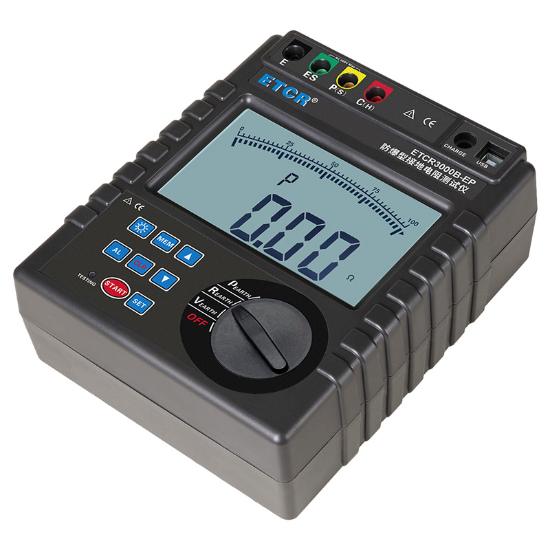 ETCR3000B防爆型接地電阻測(cè)試儀又稱數(shù)字接地電阻測(cè)試儀、地樁式接地電阻儀、土壤電阻率測(cè)試儀、二三四線接地電阻測(cè)試儀,用于接地電阻、土壤電阻率、接地電壓測(cè)量,采用數(shù)字及微處理技術(shù),精密4線法、3線法和簡(jiǎn)易2線法測(cè)量接地電阻,導(dǎo)入FFT(快速傅立葉變換)技術(shù)、AFC(自動(dòng)頻率控制)技術(shù),自動(dòng)識(shí)別干擾并選擇測(cè)量頻率,使干擾的影響最小化,提供更加準(zhǔn)確的接地電阻值,廣泛應(yīng)用于電力、電信、氣象、建筑、防雷及工業(yè)電氣設(shè)備等行業(yè)。
