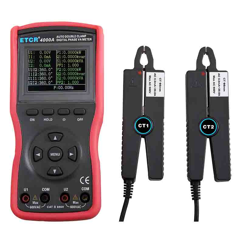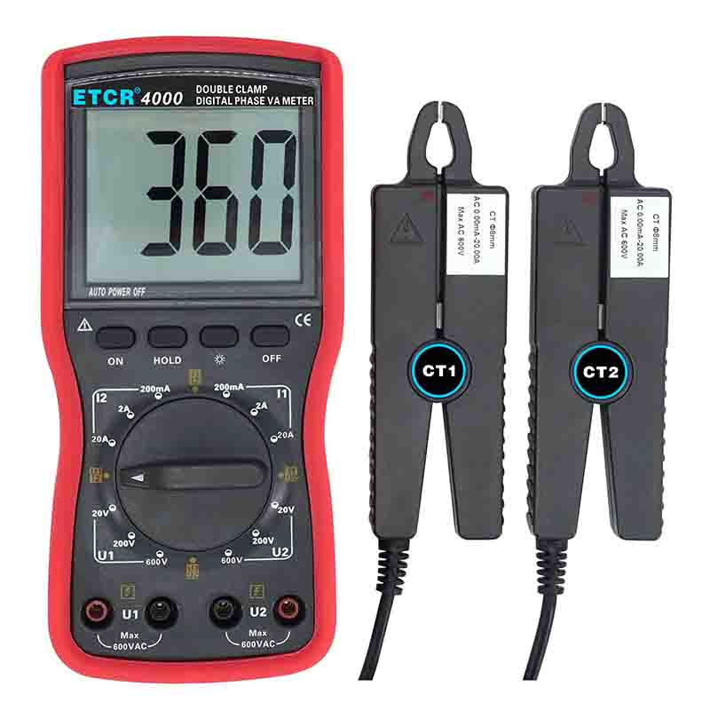 | ETCR4000數字雙鉗相位伏安表 | Φ8mm | 0~360° | 0.00V~600V | 0.00A~20.0A | -- |