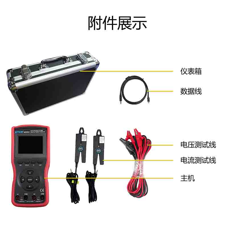 | ETCR4000數(shù)字雙鉗相位伏安表 | Φ8mm | 0~360° | 0.00V~600V | 0.00A~20.0A | -- |
