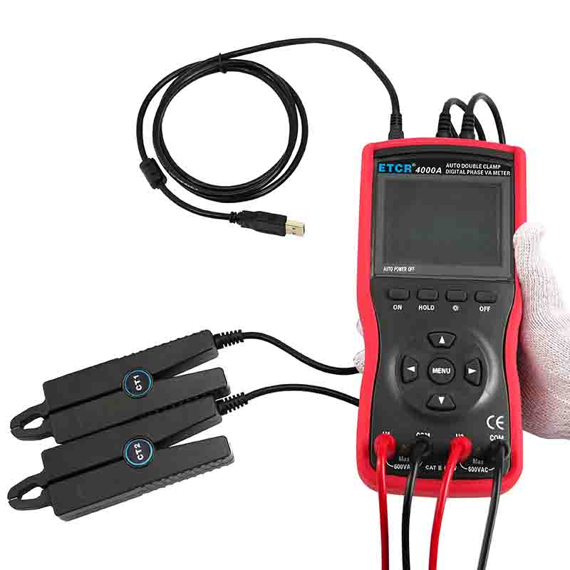 ETCR4000A智能型雙鉗數(shù)字相位伏安表采用2.8寸TFT彩色液晶屏,所有參數(shù)同屏顯示,一目了然。是對(duì)機(jī)械旋鈕式相位伏安表的全面升級(jí),減少了操作的繁瑣性,降低了誤操作的可能性,測(cè)試精度高、使用方便。儀表配有的防振防滑高絕緣護(hù)套,USB通訊接口,可存儲(chǔ)1200組數(shù)據(jù),通過(guò)系統(tǒng)軟件上傳所存數(shù)據(jù)到電腦,實(shí)現(xiàn)在線實(shí)時(shí)監(jiān)測(cè)與歷史查詢,讀取、保存、報(bào)表、打印歷史數(shù)據(jù)等。