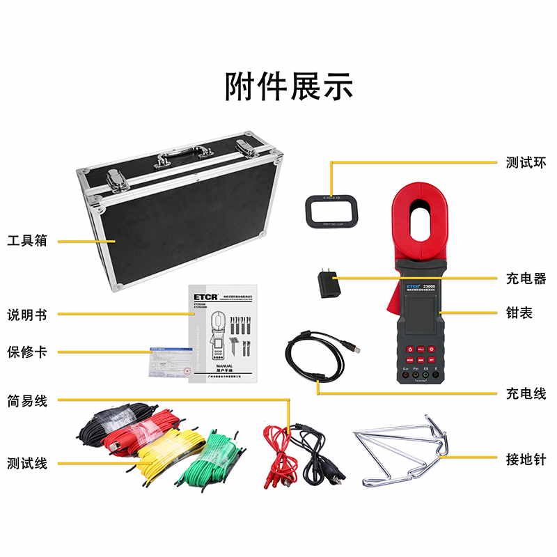 ETCR2300B地樁式鉗形接地電阻表又稱地樁式鉗形接地電阻表、地樁式鉗形表,用于現(xiàn)場測量接地電阻、土壤電阻率、接地電流、接地電壓。儀表具有鉗表法、二線法、三線法、四線法、選擇法等各種測量方法,儀表導(dǎo)入FFT(快速傅立葉變換)技術(shù)、AFC(自動頻率控制)技術(shù),具有獨特的抗干擾能力和環(huán)境適應(yīng)能力,重復(fù)測試一致性強,確保測量的高精度、高穩(wěn)定性和高可靠性。