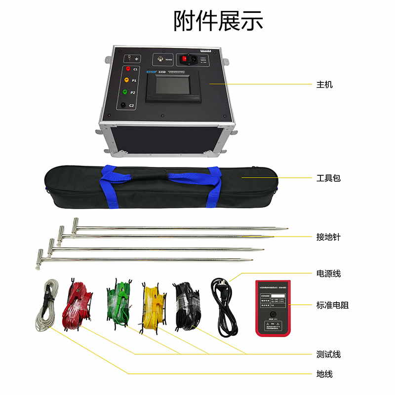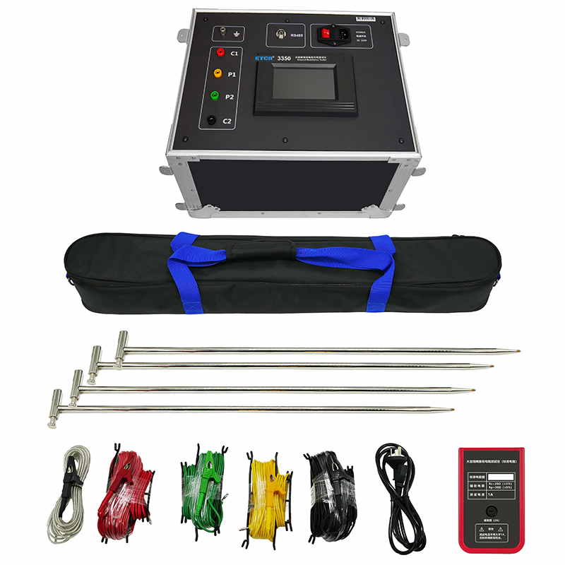 ETCR3350大型地網(wǎng)接地電阻在線監(jiān)測儀根據(jù)《JJG984-2004接地導通檢定規(guī)程電阻測試儀》,《DL/T475-2006接地裝置特性參數(shù)測量導則》,《DL/T845.2-2004電阻測量裝置通用技術(shù)條件第二部分:工頻接地電阻測試儀》生產(chǎn)制造。具有獨特的接地樁及連接線診斷功能和自檢功能,確保測試結(jié)果的準確。儀器采用超強的自動變頻抗干擾技術(shù),配合400V/5A大功率輸出,能在強干擾環(huán)境下準確測得工頻50Hz下的數(shù)據(jù)。