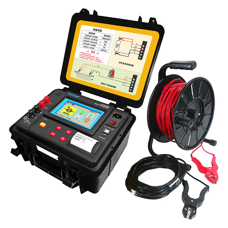 ETCR3650接地引下線導通測試儀專門用于接地裝置的電氣完整性測試,其各項技術指標均達到或優(yōu)于相關標準要求。儀器由主機、測試線等組成,儀表采用微處理機技術,精密四線法測試,準確可靠。儀表有AC220V及大容量鋰電池兩種供電模式,自動測量及手動測量兩種測量模式,儀表采用5寸全彩高清觸摸屏,帶背光調節(jié)功能,強光下清晰可見。儀表外殼采用防水保護箱,防撞、防摔、防水堅固安全耐用,儀表帶有內置打印機、藍牙通訊,USB接口。儀器操作簡單方便、精度高、測試速度快,復測性好、讀數(shù)直觀,是符合規(guī)程要求的理想的專用儀器,大大方便了試驗項目的開展,提高了工作效率。