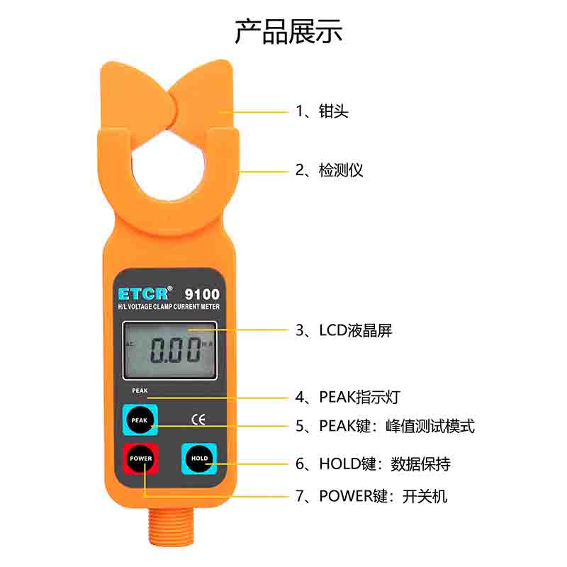 ETCR9100高低壓鉗形電流表鉗頭與引導區(qū)創(chuàng)新的一體化設計,通過按壓或退拔絕緣桿能快速方便鉗夾或撤離被測導線,安全快捷。儀表還具有峰值保持、數(shù)據(jù)保持、數(shù)據(jù)存儲等功能。