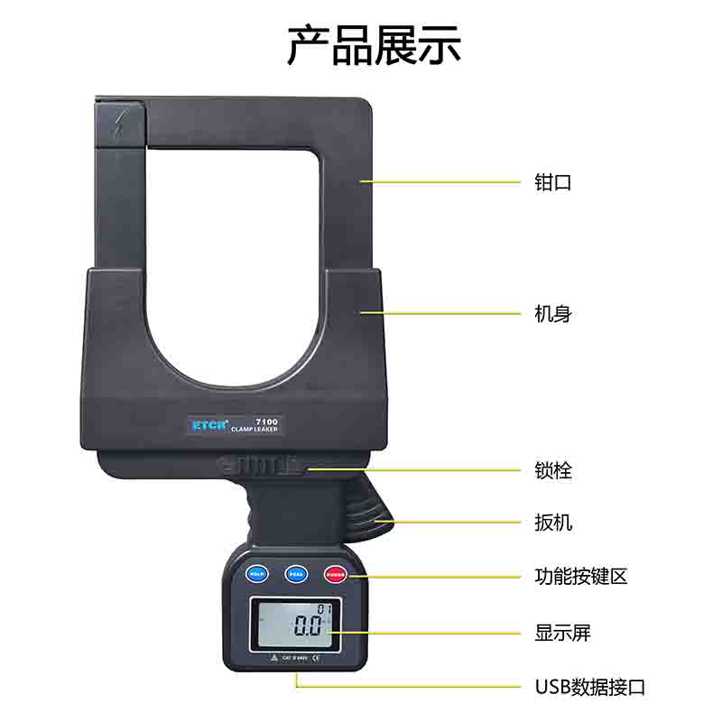 ETCR7100超大口徑鉗形漏電電流表又稱鉗形漏電流測(cè)試儀、超大鉗口鉗形電流表,用于交流漏電流、交流電流測(cè)量。鉗表傳感鐵芯采用坡膜合金及雙層蔽技術(shù),幾乎不受外界電磁場(chǎng)的影響,確保了常年無間斷測(cè)量的高精度、高穩(wěn)定性、高可靠性。超大口徑(108mm×148mm:可鉗φ108mm電纜或160mm×4mm扁鋼地線),特別適合于電纜漏電及變壓器接地扁鋼漏電檢測(cè)。廣泛適用于電力、通信、氣象、鐵路、油田、建筑、計(jì)量、科研教學(xué)單位、工礦企業(yè)等領(lǐng)域。