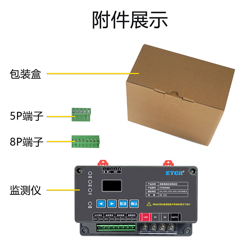 | ETCR3580B絕緣電阻在線監(jiān)測儀 | 50V、100V、250V、500V、自定義 | 0.1MΩ~20GΩ | 2mA MAX | 1路~8路可選 | RS485、藍(lán)牙通訊 |