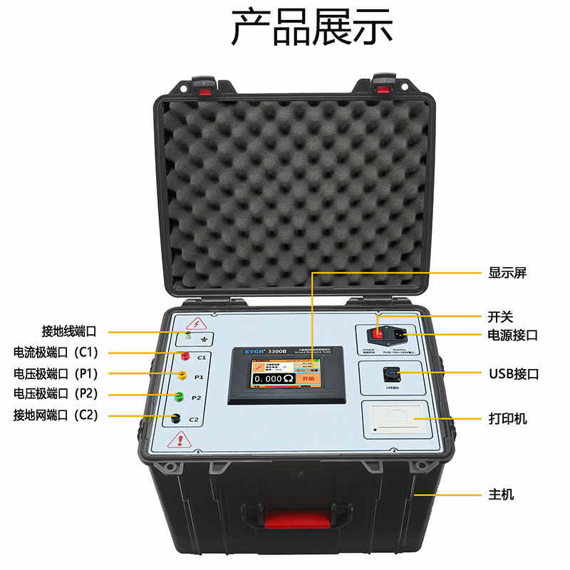 ETCR3300B大型地網(wǎng)接地電阻測試儀具有存儲功能、時鐘功能,自動存儲含有日期時間的測試結(jié)果1000組,通過USB接口可將測試數(shù)據(jù)安全的上傳到PC機(jī),可以實現(xiàn)歷史數(shù)據(jù)讀取、查閱、保存、打印等功能。儀器具有支持安卓系統(tǒng)的藍(lán)牙通訊功能。