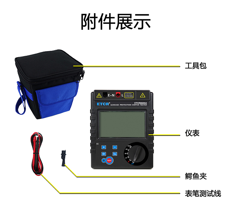 | ETCR8600A漏電保護(hù)器測試儀 | 3mA~500mA,十八檔 | 0ms~999ms | AC 0~600V | 大LCD屏 | 干電池 |