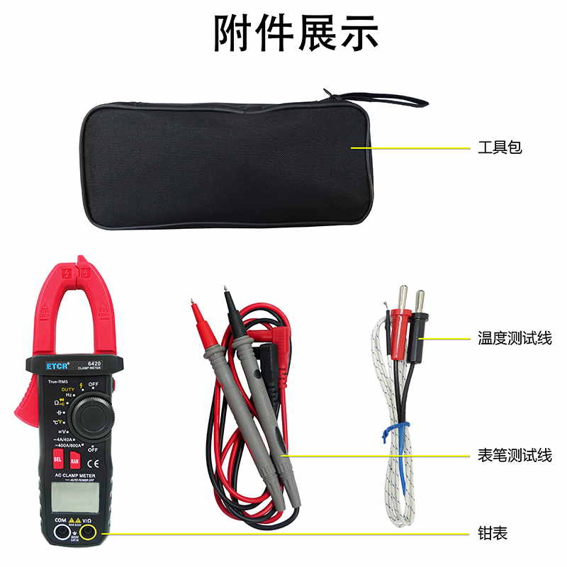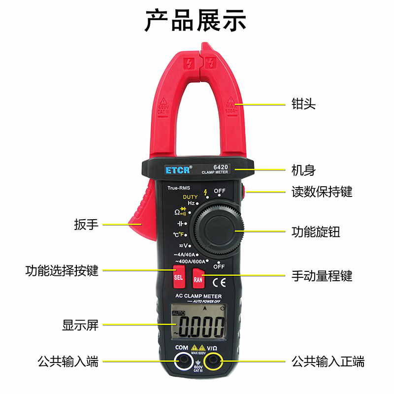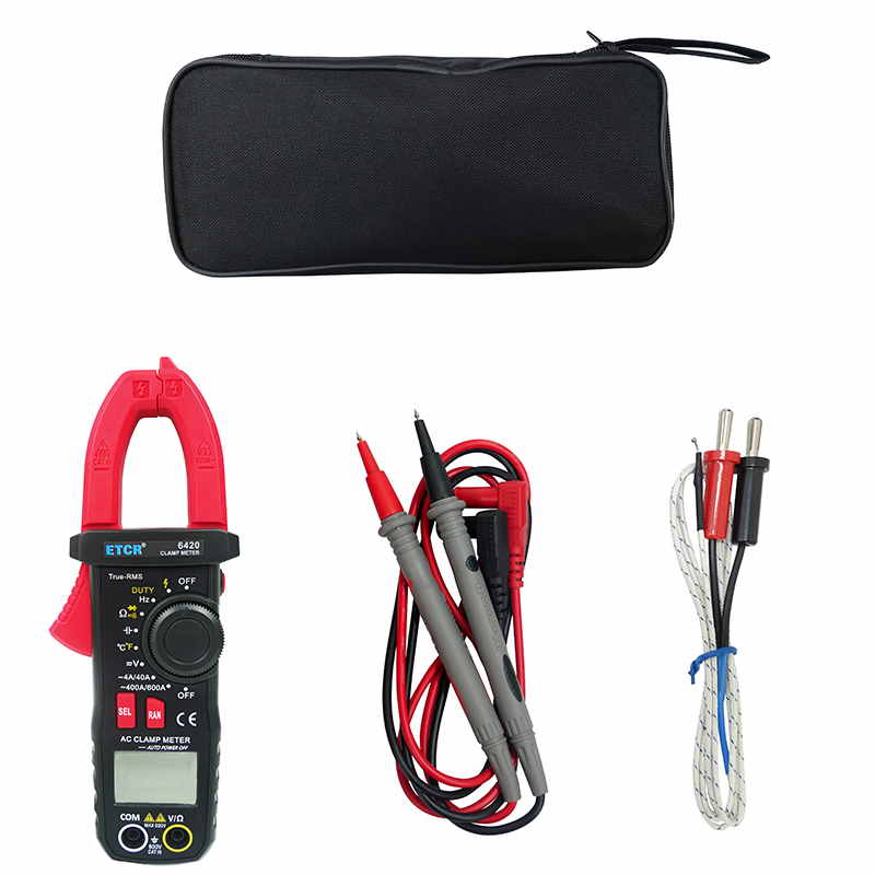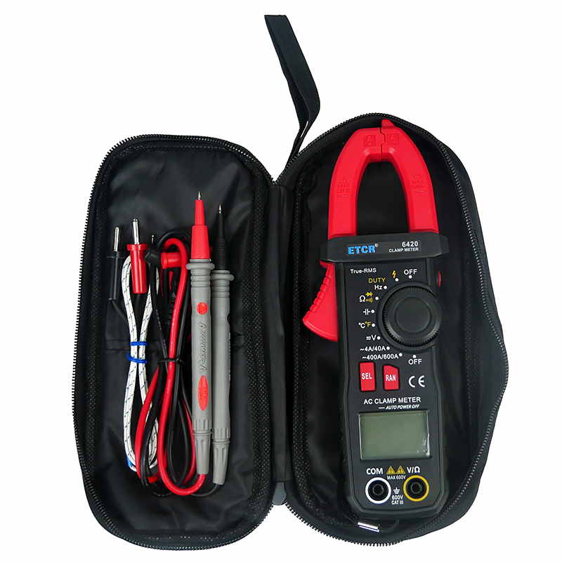 ETCR6420鉗形萬用表又稱多功能鉗形電流表,是一種便攜式鉗形數(shù)字多用表,可測(cè)量直流電壓、交流電壓電流真有效值、電阻、頻率、通斷測(cè)試、溫度、二極管正向壓降等參數(shù),電容測(cè)量量程擴(kuò)大到10mF且測(cè)量大電容速度快。該儀表結(jié)構(gòu)小巧、操作容易、攜帶方便,是電氣測(cè)量之理想工具。為用電檢查人員提供一種安全、準(zhǔn)確、便捷的新型電力儀表,是電工安全檢測(cè)的必備工具。