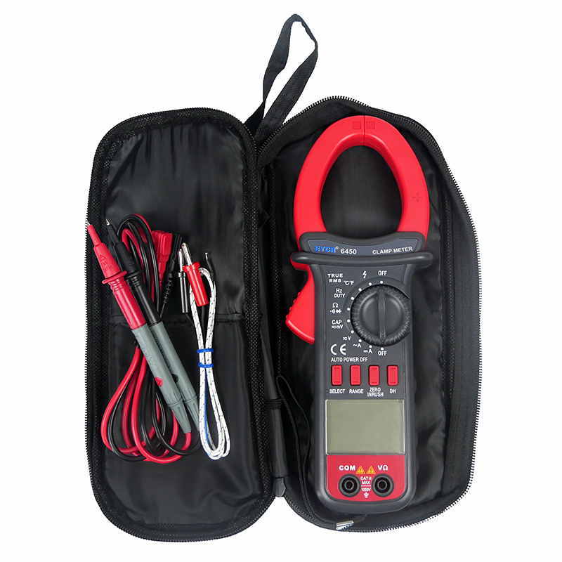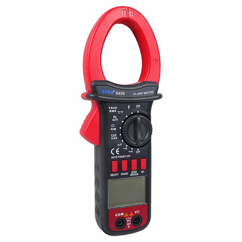 ETCR6450鉗形萬用表又稱多功能鉗形電流表,儀表采用高性能的新型MCU處理器,儀表具有極高的性價比,它具備高可靠性、高安全性、自動量程、手持式鉗形表等特點。具有超大屏幕數(shù)字,全量程過載保護,數(shù)據(jù)保持、欠壓提示、自動關(guān)機功能,真有效值測量能準確測量變頻電壓,非正弦波電壓,浪涌電流能測量周期為80mS的浪涌電流有效值,再配有能準確測量-50~1000℃的溫度測量功能,使本儀表非常適合變頻電源、空調(diào),冰箱等制冷設(shè)備,電機性能檢測等, DC40A、400A、1000A量程的直流電流功能廣泛適用于電鍍,直流焊機、汽車檢測及各種直流500mA以上電流測量場合。