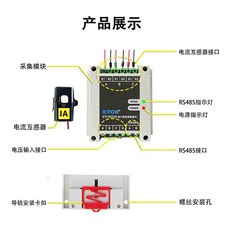 1、采集模塊可接入 3 路電流互感器、3 路電壓。