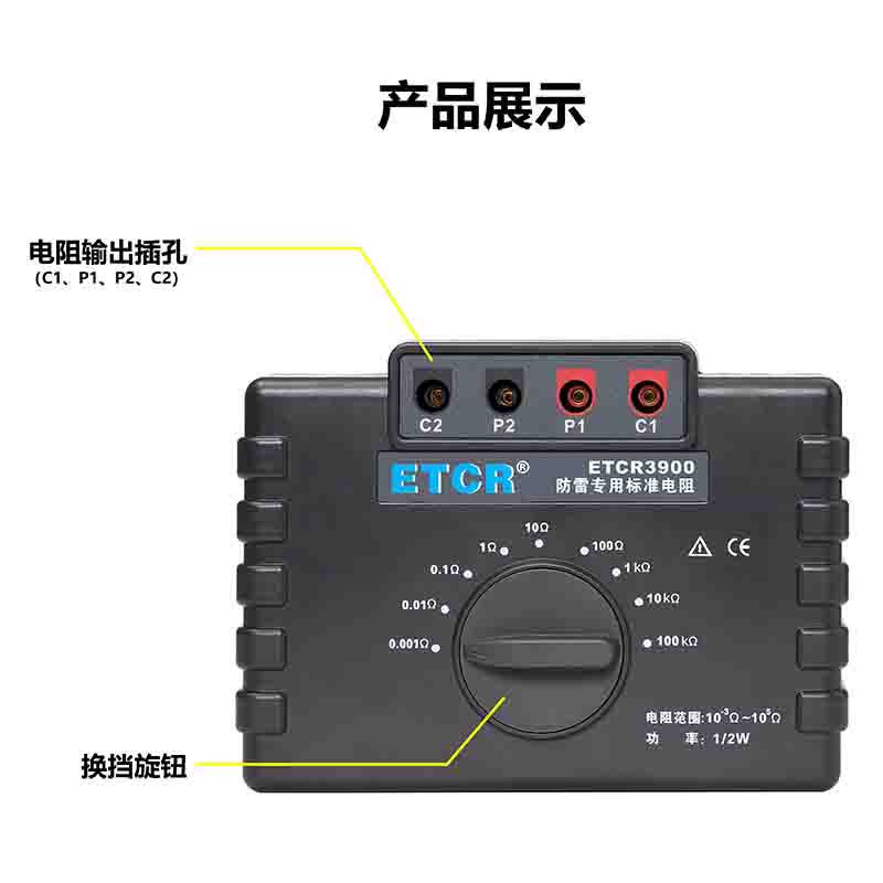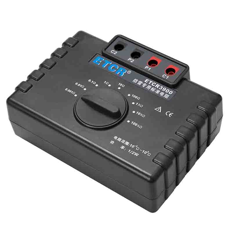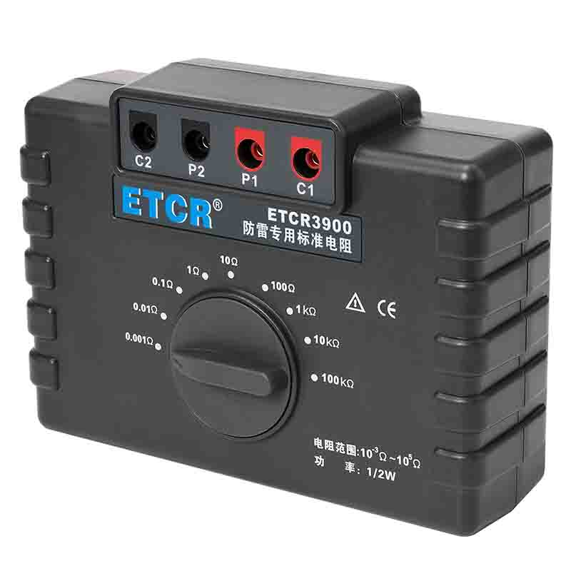 ETCR3900防雷專用標(biāo)準(zhǔn)電阻由9個1/2W高精度線繞電阻組成,校準(zhǔn)電阻時直接換擋測試,無需更換測試線,性能穩(wěn)定結(jié)構(gòu)堅固,校準(zhǔn)測試特別方便。采用的高精度線繞電阻最高精度達0.05%,其阻值包括1mΩ、10mΩ、100mΩ、1Ω、10Ω、100Ω、1kΩ、100kΩ完全滿足國家氣象局38號令【雷電防護裝置檢測資質(zhì)管理辦法】中規(guī)定的10-3~105Ω范圍。本標(biāo)準(zhǔn)電阻主要用于接地電阻測試儀、等電位測試儀等儀器的校準(zhǔn)。廣泛應(yīng)用于建筑質(zhì)檢站、監(jiān)理公司、建筑施工單位、防雷公司、電力部門等。