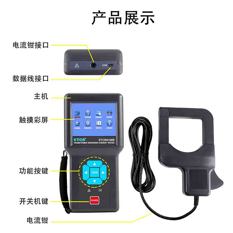 ETCR8100B變壓器鐵芯接地電流測試儀采用高速微處理器,3.5寸彩色觸摸液晶屏,中文界面操作方便快捷。能實時顯示被測電流的大小及波形;具有報警臨界值設(shè)定及報警指示功能;具有日期時鐘及設(shè)置功能;具有自動關(guān)機(jī)功能;具有設(shè)定試品編號功能;具有USB接口,可將存儲數(shù)據(jù)導(dǎo)入電腦,儀表可以存儲數(shù)據(jù)及波形100組。