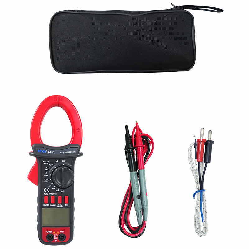 ETCR6450鉗形萬用表又稱多功能鉗形電流表,儀表采用高性能的新型MCU處理器,儀表具有極高的性價比,它具備高可靠性、高安全性、自動量程、手持式鉗形表等特點。具有超大屏幕數(shù)字,全量程過載保護,數(shù)據(jù)保持、欠壓提示、自動關(guān)機功能,真有效值測量能準確測量變頻電壓,非正弦波電壓,浪涌電流能測量周期為80mS的浪涌電流有效值,再配有能準確測量-50~1000℃的溫度測量功能,使本儀表非常適合變頻電源、空調(diào),冰箱等制冷設(shè)備,電機性能檢測等, DC40A、400A、1000A量程的直流電流功能廣泛適用于電鍍,直流焊機、汽車檢測及各種直流500mA以上電流測量場合。