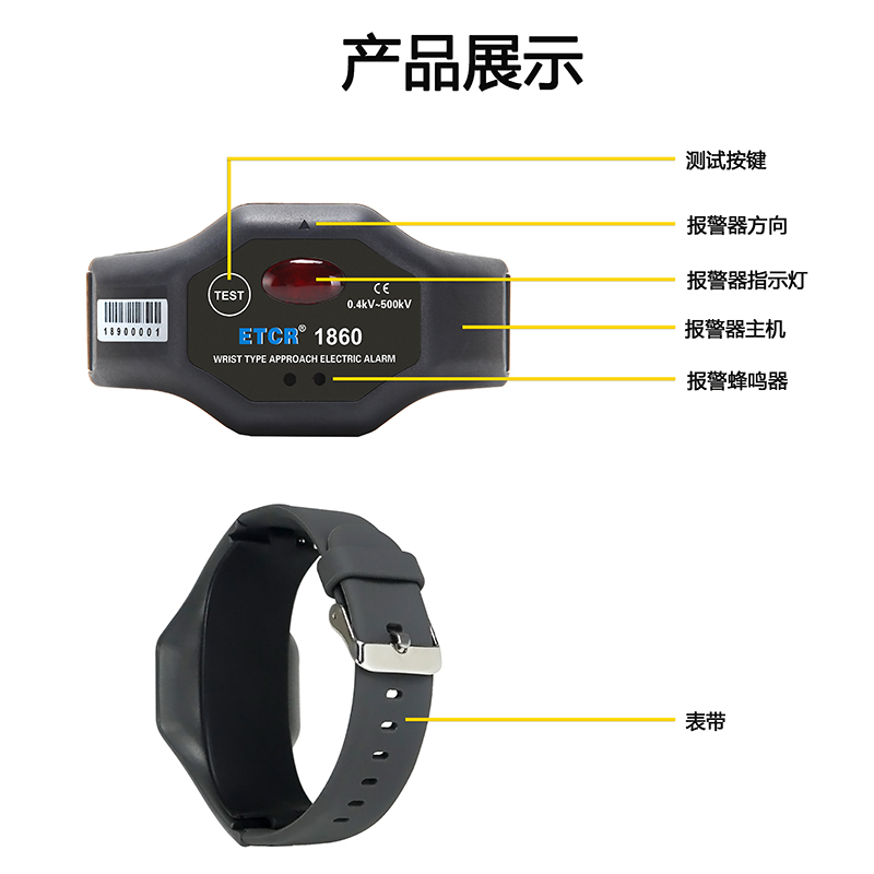 ETCR1860手腕式近電報警器又稱穿戴式近電報警器,為近電作業(yè)人員提供一款安全、實(shí)用、便捷的新型高壓報警裝置。帶電作業(yè)時,操作人員與帶電體的安全距離不能低于相關(guān)工作規(guī)程的要求。作業(yè)人員佩戴本報警器后,在接近高壓帶電體一定距離時,根據(jù)電壓等級相應(yīng)的安全距離,報警器發(fā)出聲光報警,提醒電氣工作人員注意安全,避免發(fā)生高壓觸電事故。
